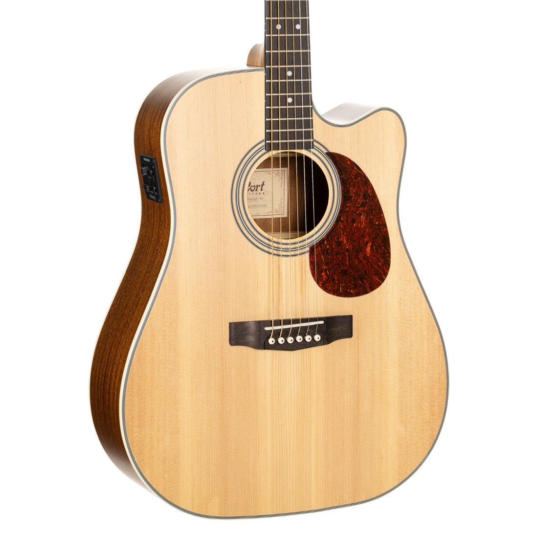 The exclusive scooped surface bridge from Cort enhances sustain with greater string angle from the saddle to the body while reducing tension on the strings across the neck were less finger fatigue and improved playability.